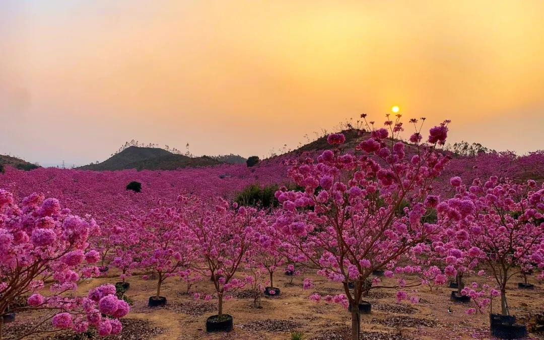 打造一个以紫花风铃木的梦幻花海