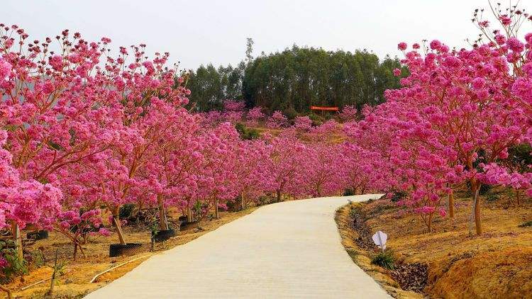 1、江门紫花风铃木,占地34万平方米,种植6000多株紫花风铃木;