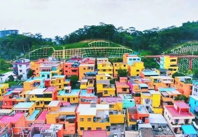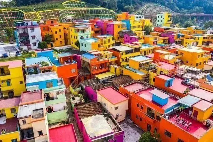 3、江门彩虹村,抖音爆款景点,犹如五颜六色的童话王国;