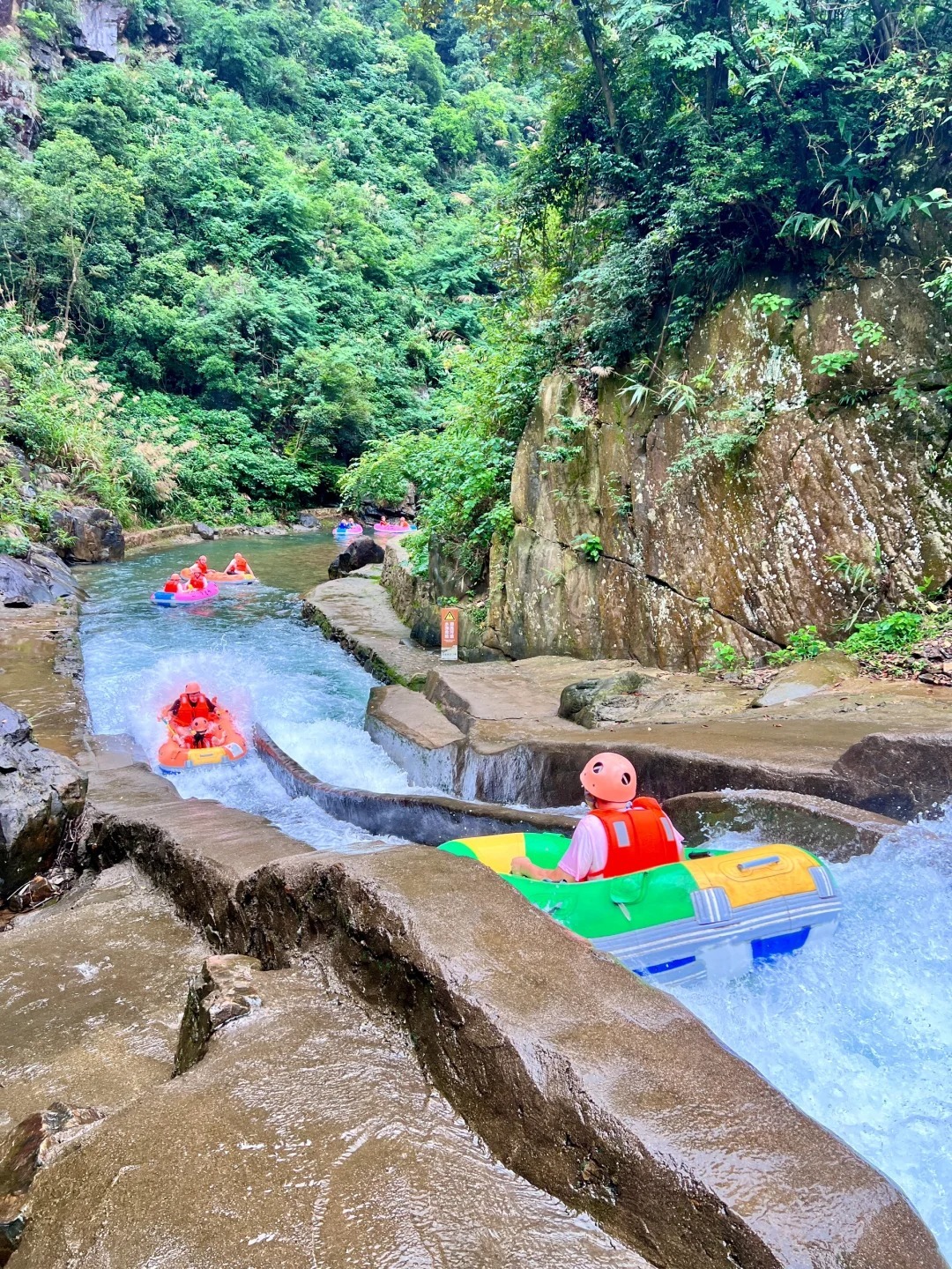 13:30 左右到达【黄腾峡景区】更换好衣服,寄存好物品,准备开漂!感受澎湃刺激的漂流,在自然生态的环境中享受一流水质的无穷魅力:漂过一山又一山,赏尽一景又一景;人在水中漂,如在画中游~