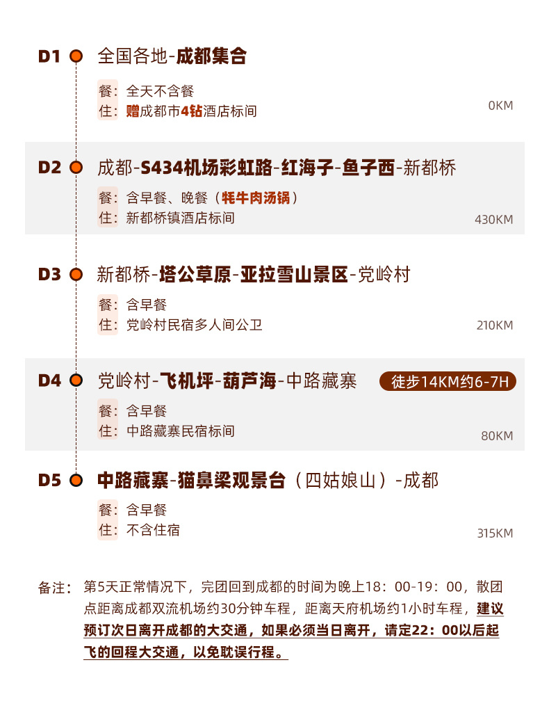 第2天:成都-S434机场彩虹路-红海子-鱼子西-新都桥(收取旅游费用总额50%的损失费)