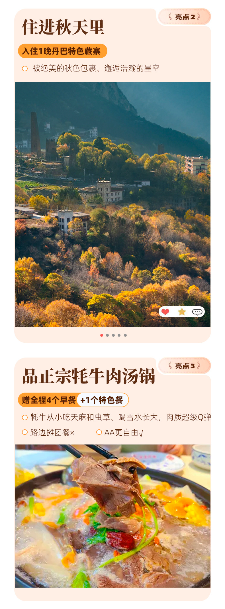 2、用餐:全程午餐、晚餐(第2天晚餐:牦牛肉汤锅除外)均不含,大家可以一起AA,也可以单独用餐,工作人员的用餐团费当中已包含,不需另外支付;