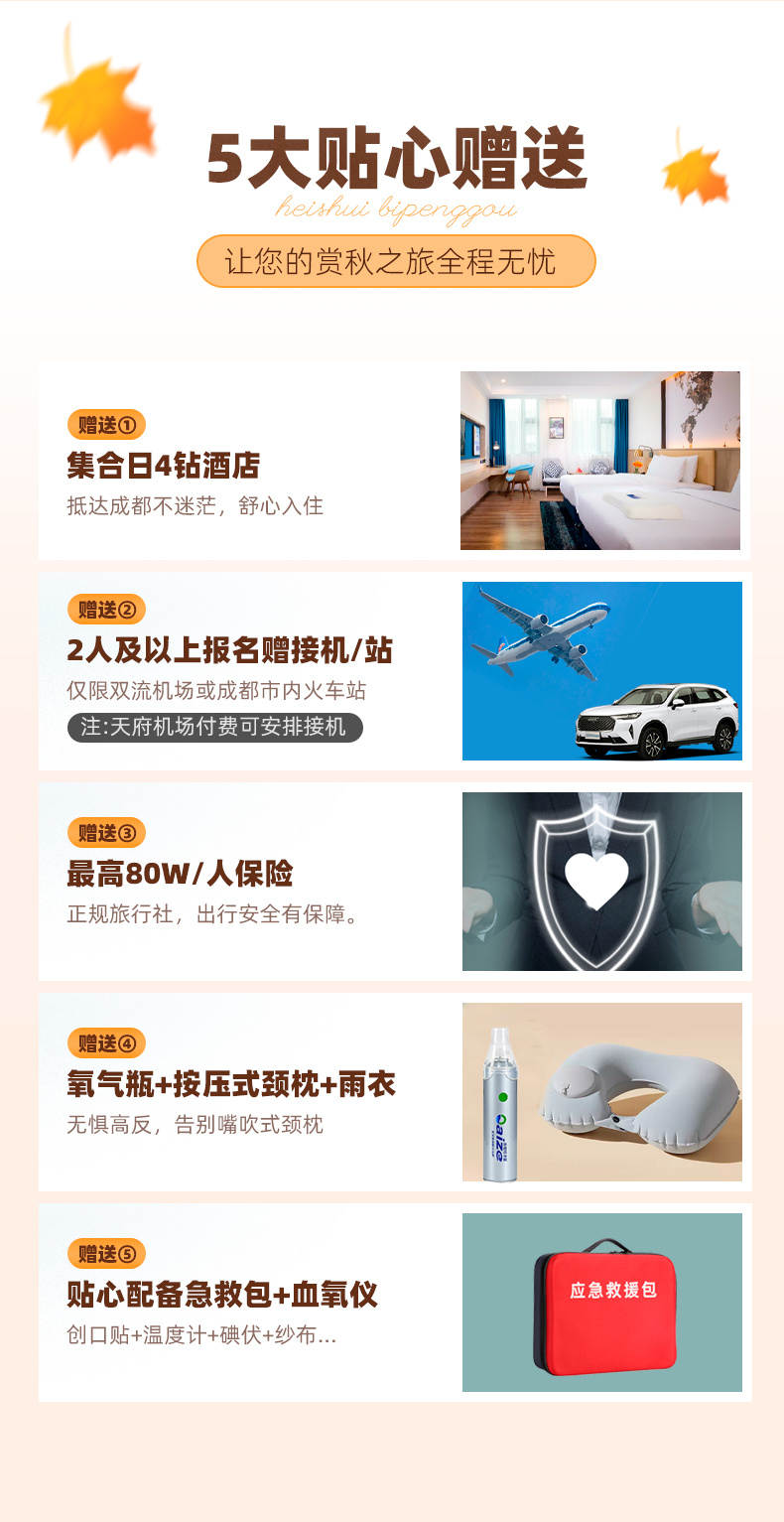 注:旅行社赠送一份旅游意外保险,如发生意外事件,该意外保险理赔的金额优先抵扣旅行社可能承担的赔偿金额。港澳人士仅限大陆三甲医院就医才可报销,如离开大陆就医不予报销。