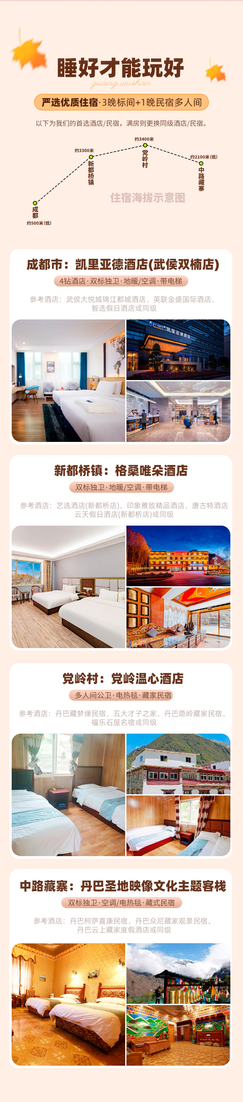 2、住宿:全程4晚住宿(3晚标间+1晚党岭民宿多人间,含集合日1晚赠送酒店、不住不退);