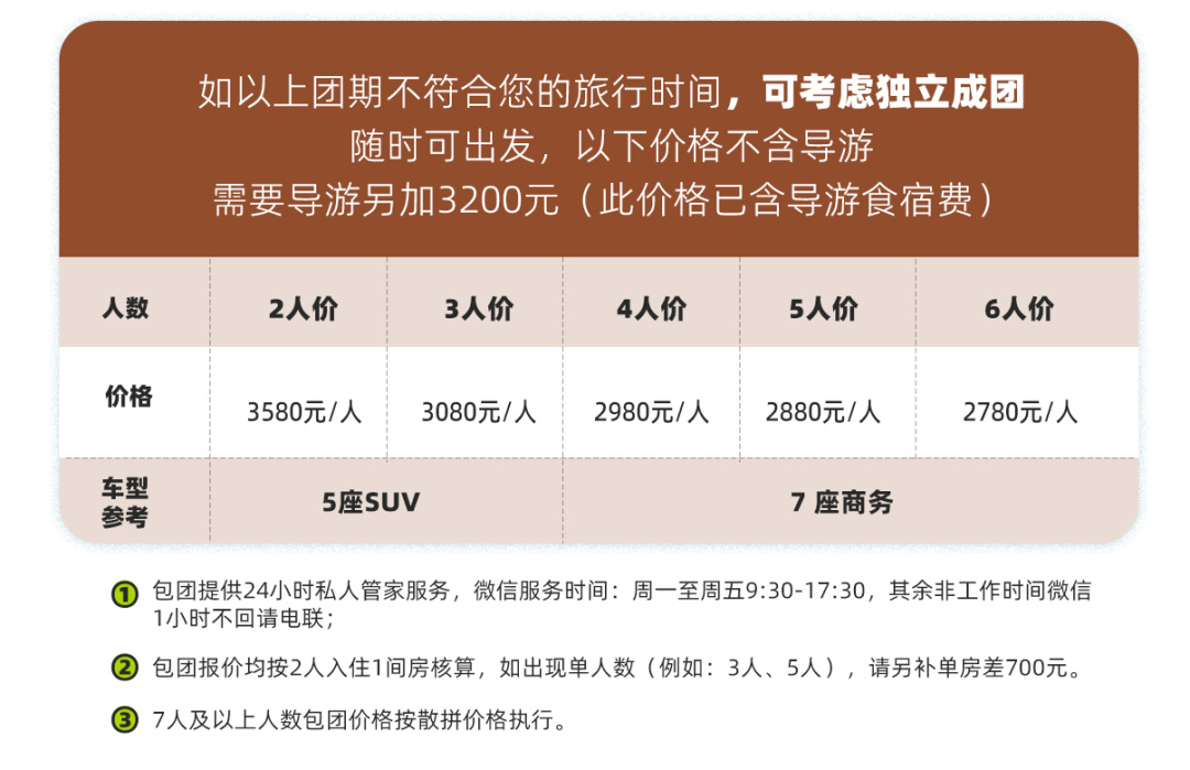 【成团说明】2人成行,8人封队,全程司机兼向导;