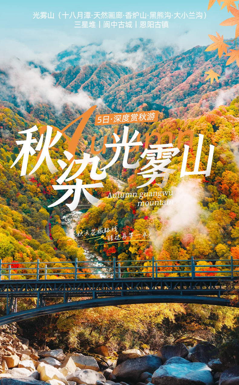 光雾山(十八月潭·天然画廊·香炉山·黑熊沟·大小兰沟)+三星堆+阆中古城5日深度赏秋游