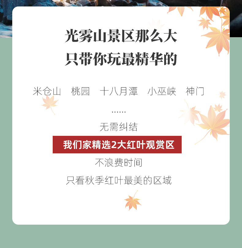 秋季限定,仅5期,在对的时间去对的地方,避开周末高峰期,周内错峰游玩,人少不拥挤。