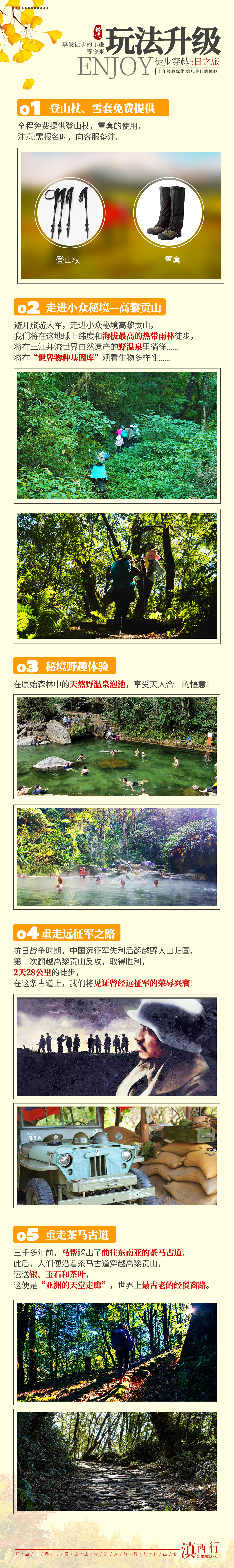 1、我们将根据当地的进山政策,灵活安排徒步路线,感受到高黎贡的原始美景;