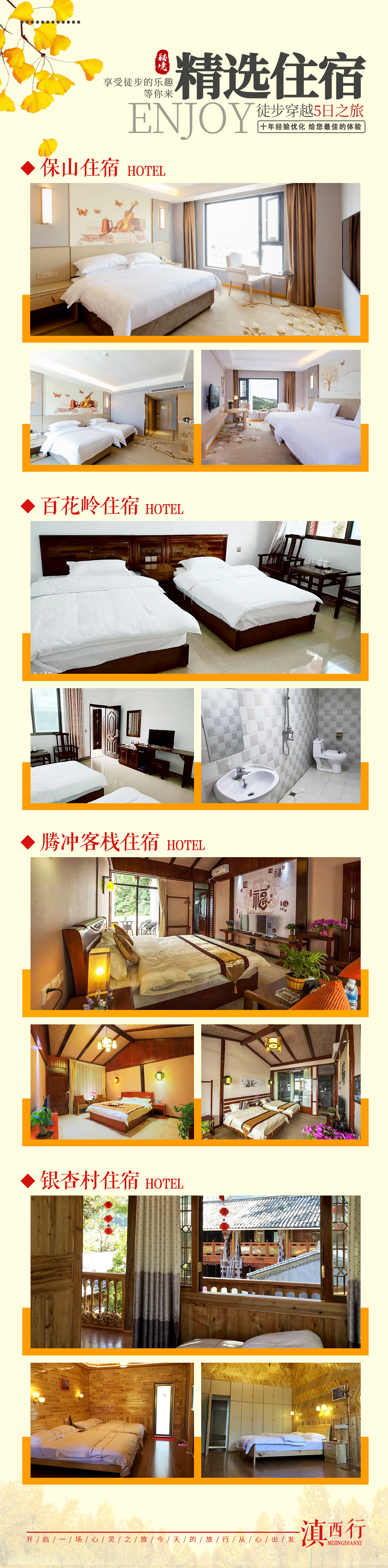 2、全程住宿费4晚(保山携程四钻酒店1晚,百花岭优选民宿1晚,腾冲特色客栈1晚,和顺古镇特色客栈1晚);
