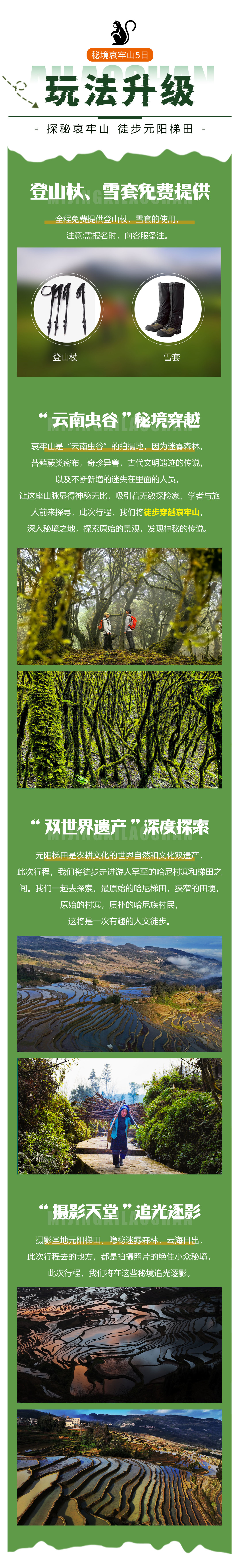 4、所列景区首道门票:元阳梯田景区(凭有效证件产生门票减免的,将退相关票费用哦);