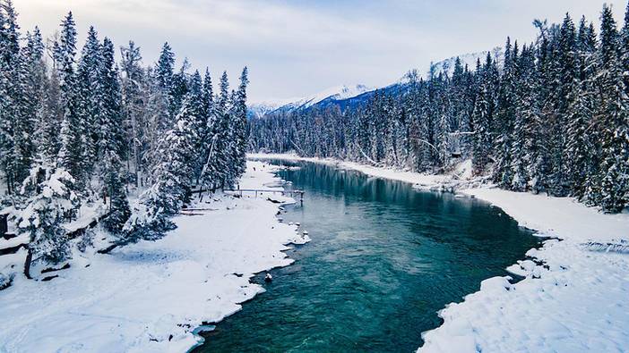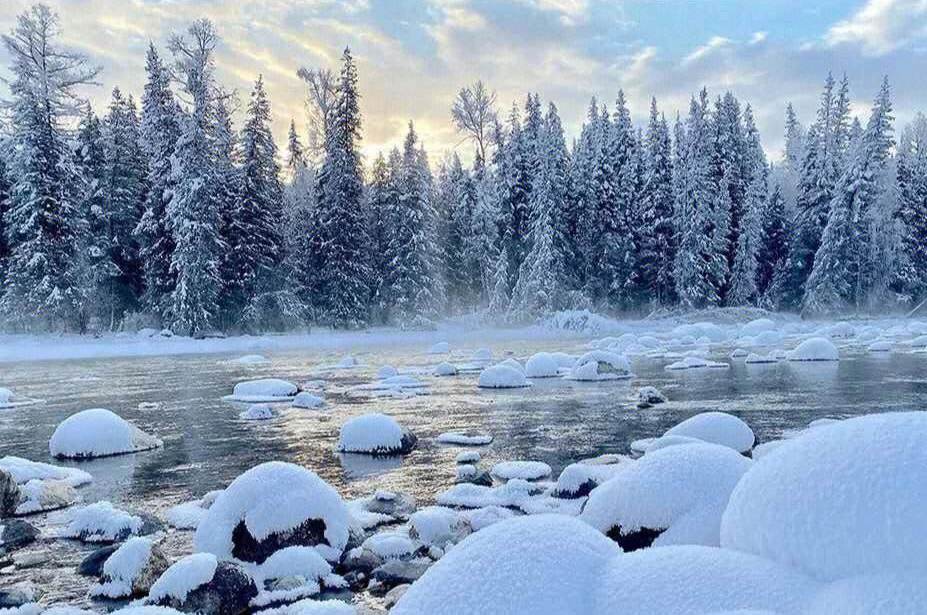 今日在喀纳斯我们可以睡到自然醒,也可以前往观景台看日出,冬天的喀纳斯村像是一幅水墨画,空灵、静谧、幽远,长达7个月的冬季,没人潮拥挤,却多了份极致的原始之美。零零星星的小木屋,银装素裹的白桦林,潺潺流过的融水,挂在树木枝桠间的雾凇,冬天的喀纳斯就是童话世界。