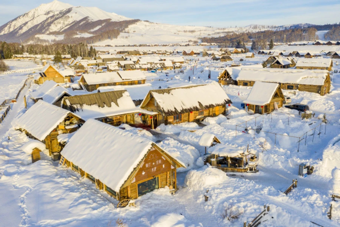 之后前往景区入住山庄,即可开始享受禾木的冬天。冬季的禾木银装素裹,白雪皑皑,一片白雪与灰色白桦林的映衬,显得那么安静与反差。没有了嘈杂的游客,它又回归到本就属于这里的静谧和纯净。登上禾木村头的小山,身边的雪花慢慢地飘动着,不远处的禾木村飘起袅袅炊烟,堆满积雪的小木屋就像童话中的小房子,山间忽而会有一群马儿走过,忽而又不知从哪儿隐入山林中,让人感觉身处世外仙境。此时此刻,我们可以感受图瓦人的生活与安逸,白雪皑皑的雪峰,悬崖边的雾凇“雪蘑菇”,茫茫苍苍的林海雪原……每一个角度,每一个小景,都让人怦然心动。