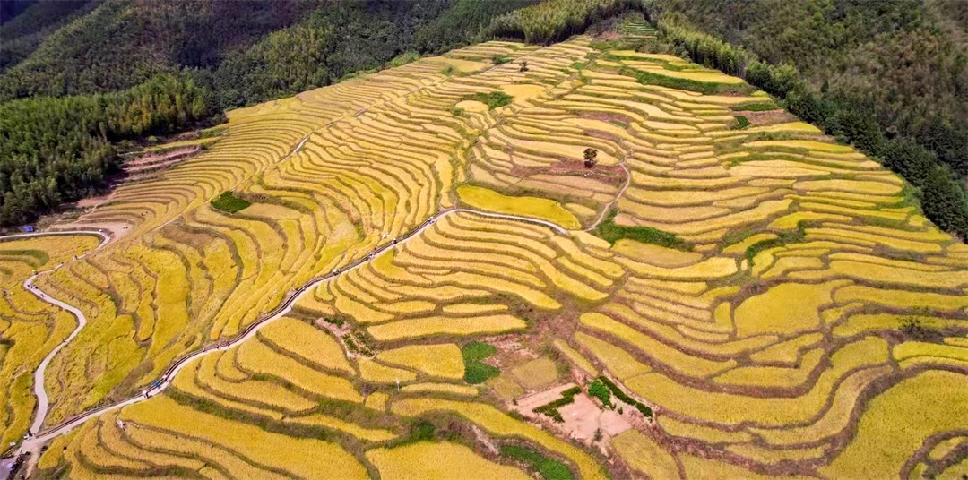 层层叠叠的梯田依山势延绵而下