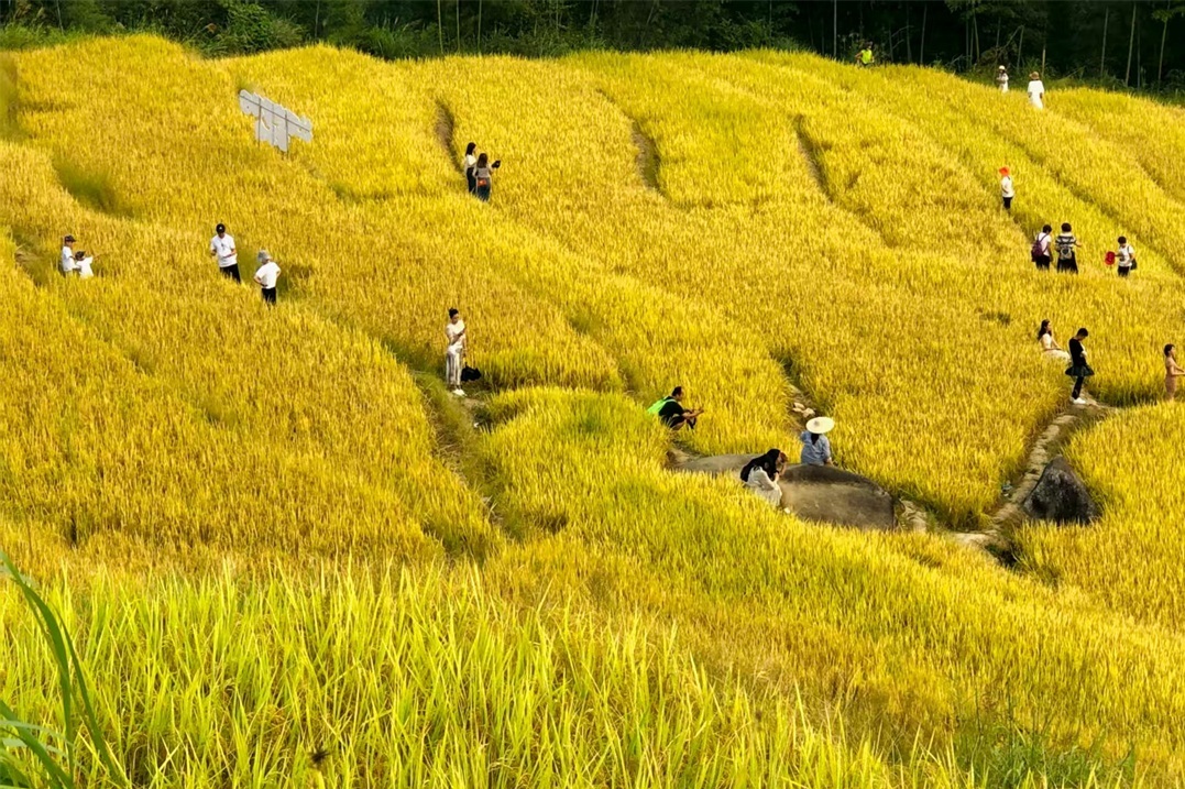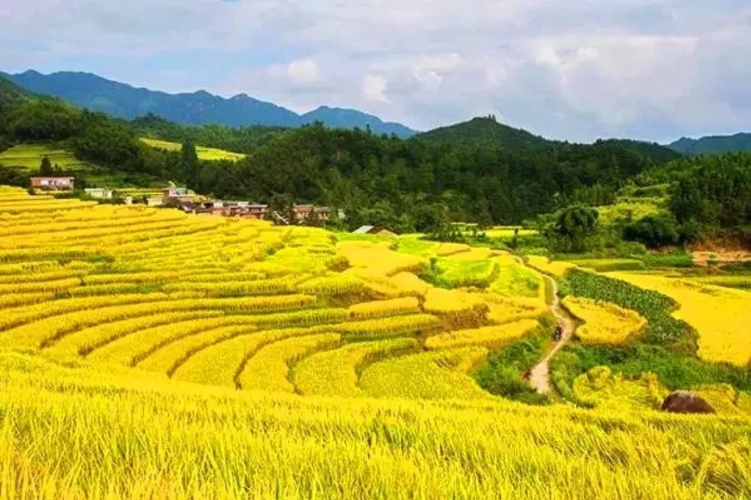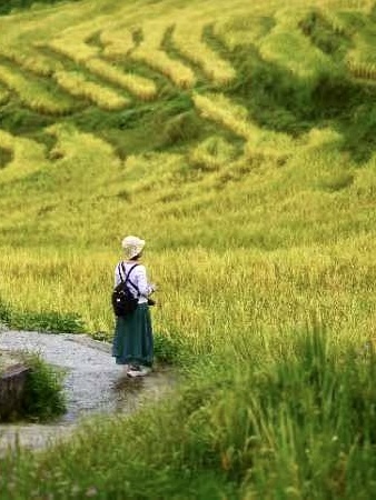 走在梯田小路上,伸手即可摸到稻穗