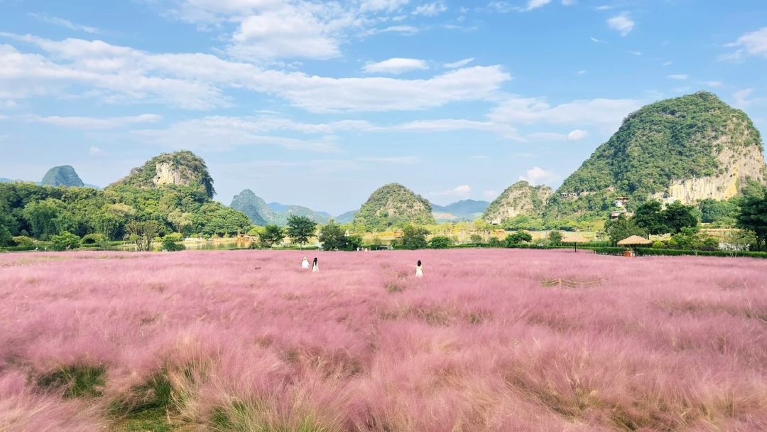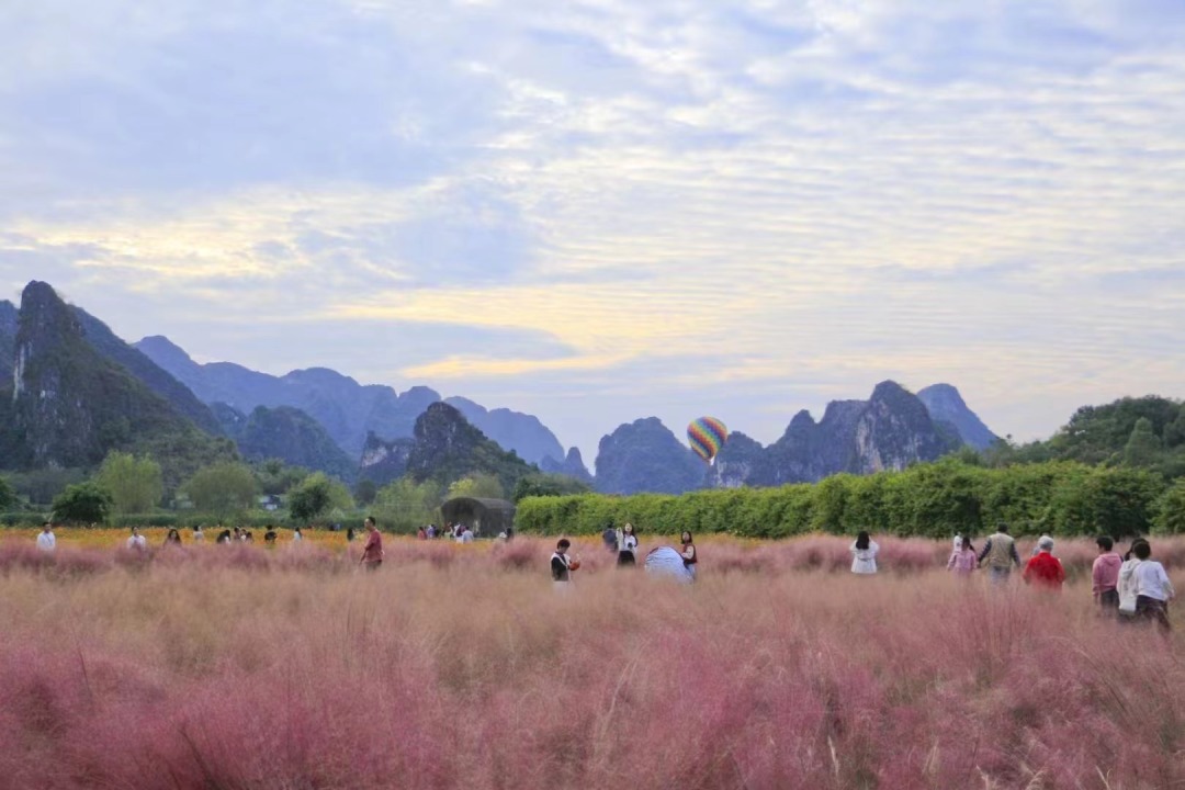 2. 峰林晓镇:4A级景区,赴一场秋日之约,邂逅广东地区至大至美的粉黛乱子草花海,粉色浪漫,如梦如幻,动人心弦