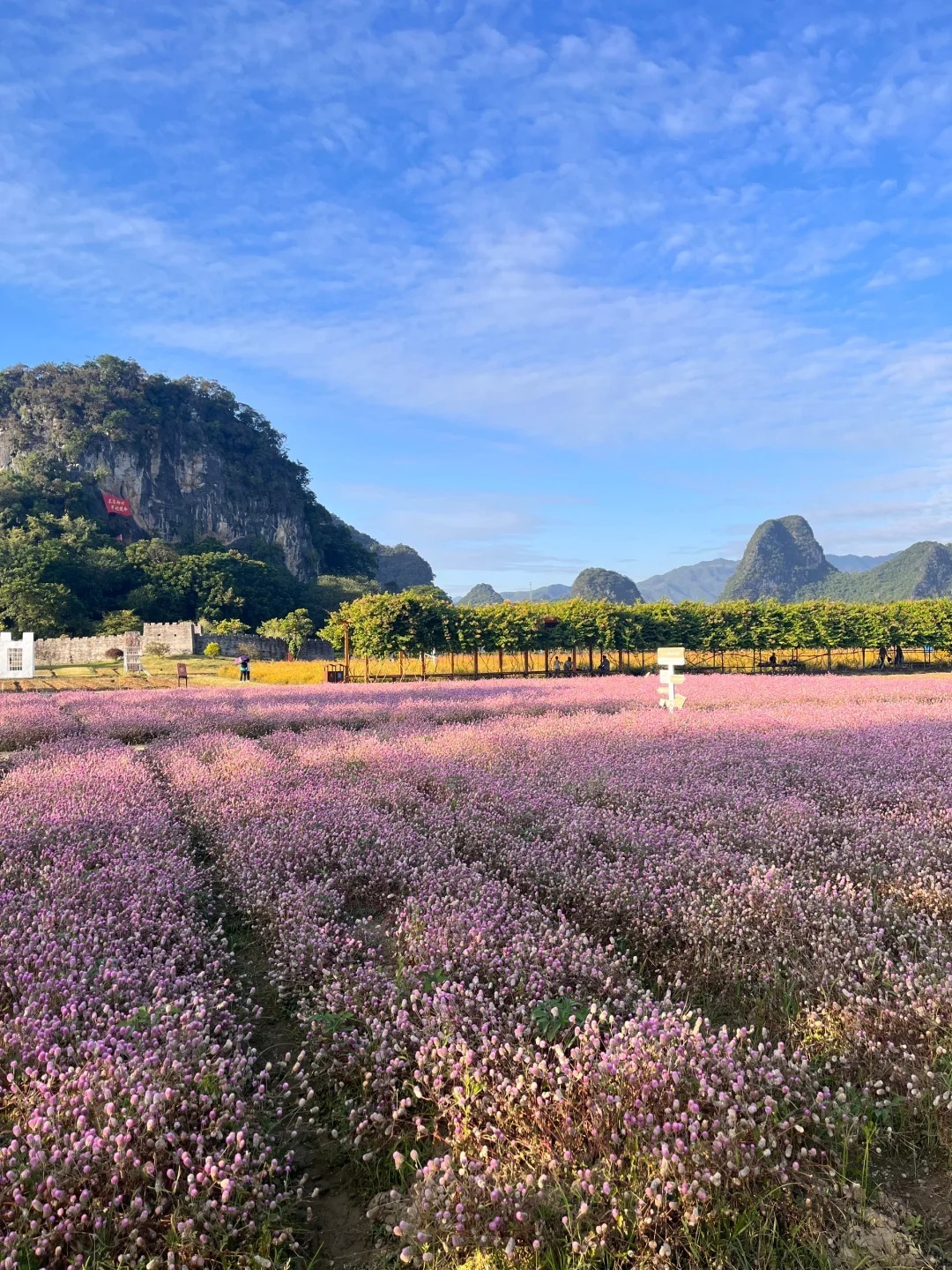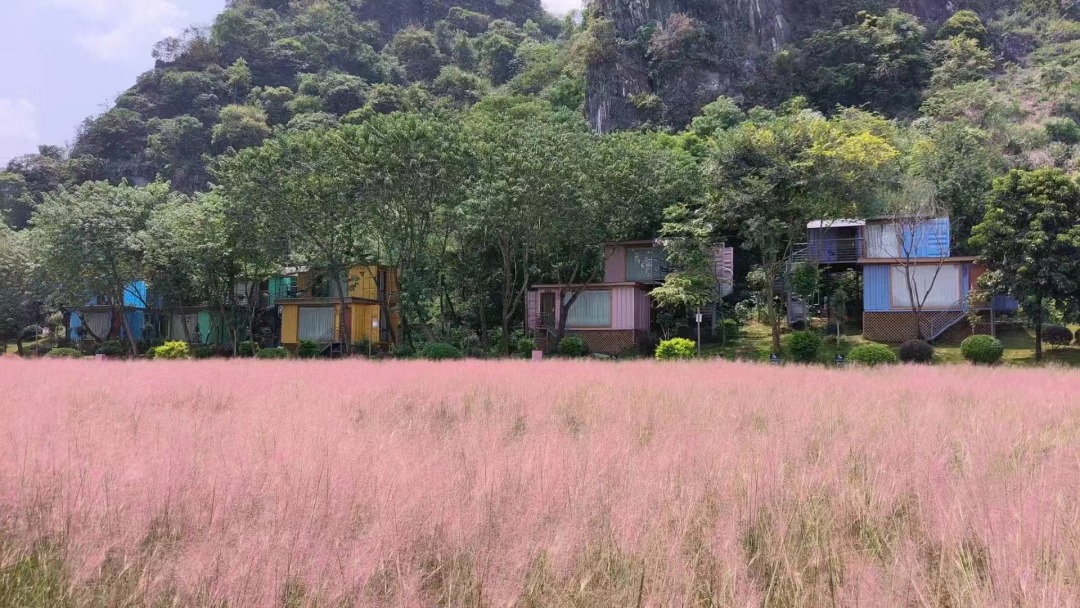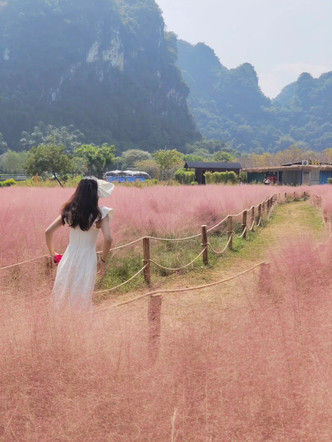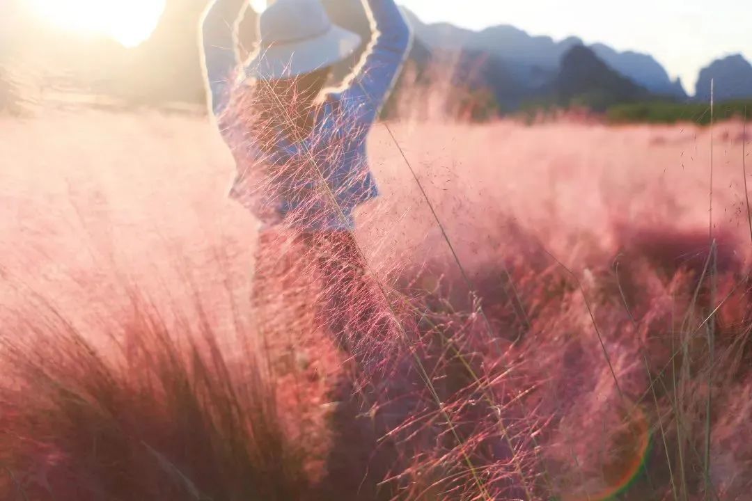 12:00 到达【峰林晓镇】,先在景区的农庄AA午餐。饱餐之后,一头扎进粉红色的海洋,合拍网红粉黛乱子草!在峰林的清风吹拂下,粉红花穗,轻微摇摆,如烟似霞,如云似雾,仿佛进入了仙境