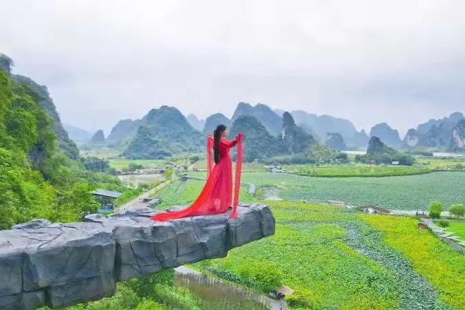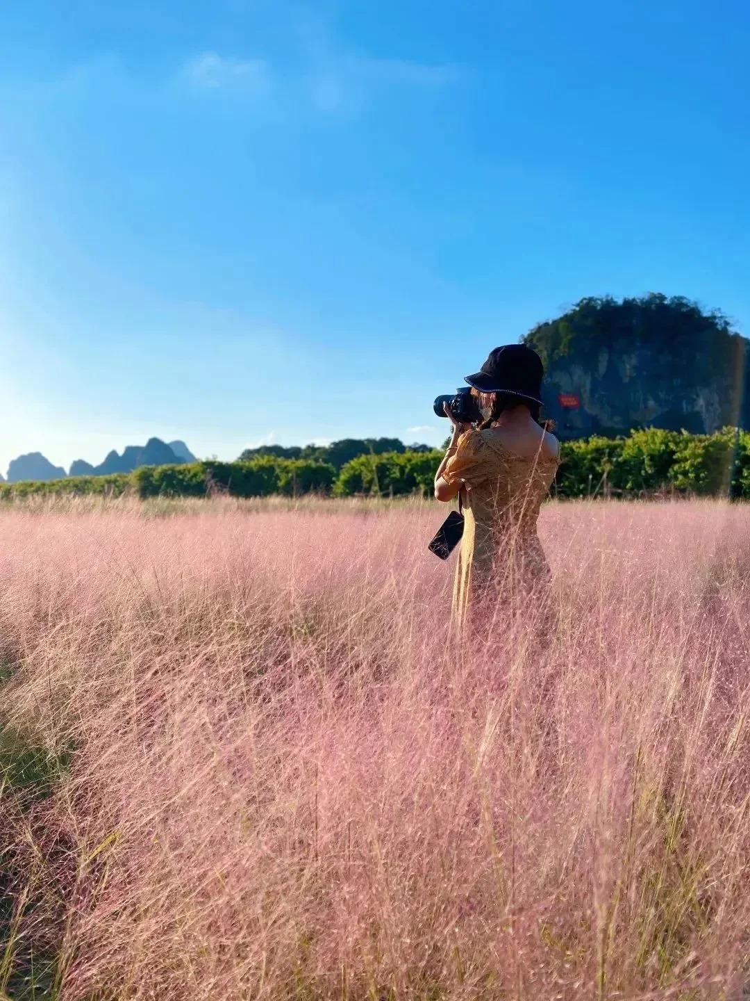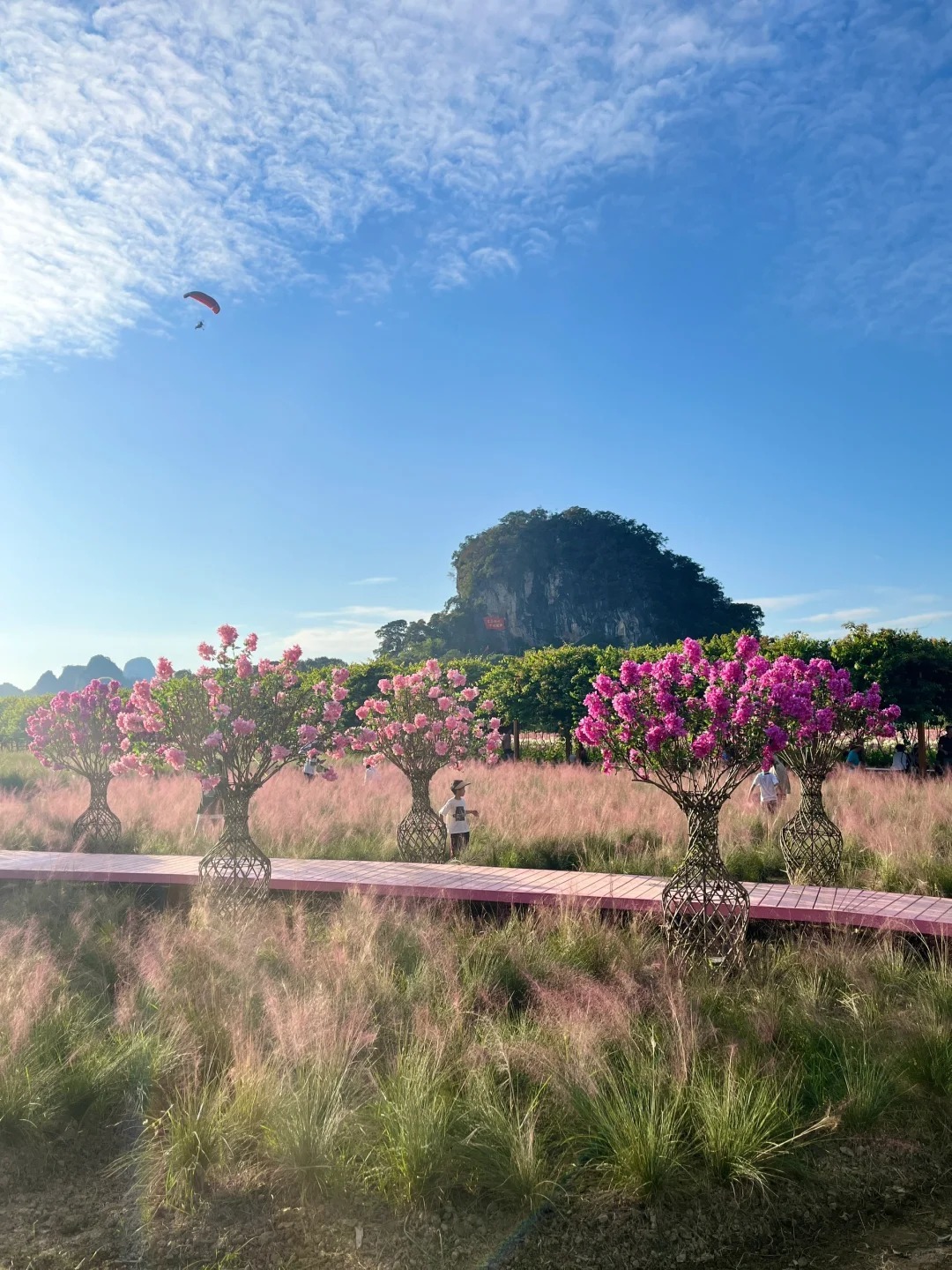 12:00 到达【峰林晓镇】,先在景区的农庄AA午餐。饱餐之后,一头扎进粉红色的海洋,合拍网红粉黛乱子草!在峰林的清风吹拂下,粉红花穗,轻微摇摆,如烟似霞,如云似雾,仿佛进入了仙境
