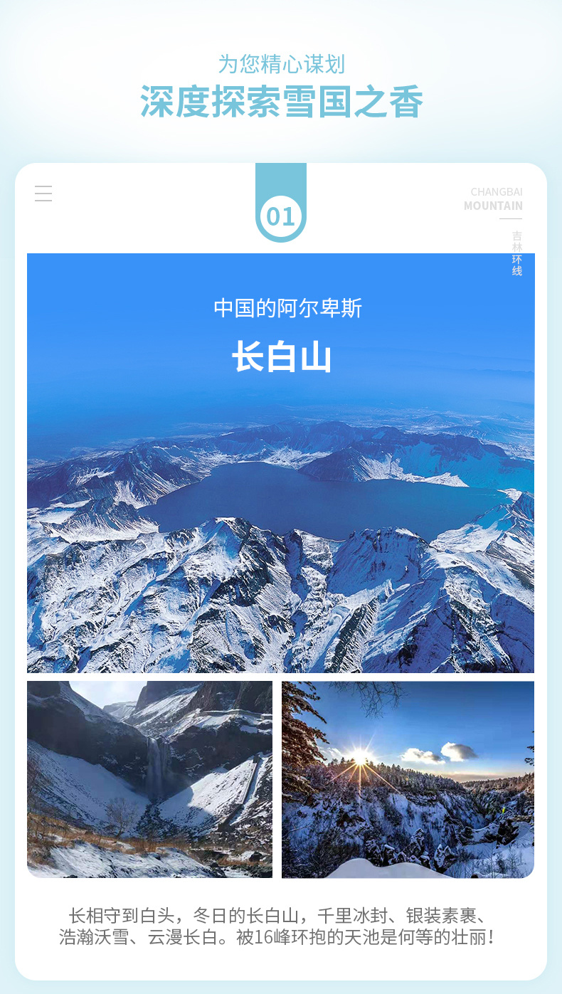 √ 游览09:30-16:30 , 快来一睹长白山绝美雪景吧!此时神秘「天池」凝结成冰,白雪覆盖。「长白瀑布」镶上了厚厚的白边,叮咚的飞瀑变成了晶莹的冰瀑从天而降,其势雄浑,虽无声却胜过有声,颇为壮观。周围是一片银装素裹,冰天雪地,而「聚龙温泉群」这里却是热气腾腾,烟雾袅袅,可行走于栈道从各个角度欣赏这五颜六色的温泉带,还可品尝用温泉水煮的鲜嫩鸡蛋。还有「绿渊潭」、「地下森林」等景点银装素裹、分外妖娆,如童话世界。