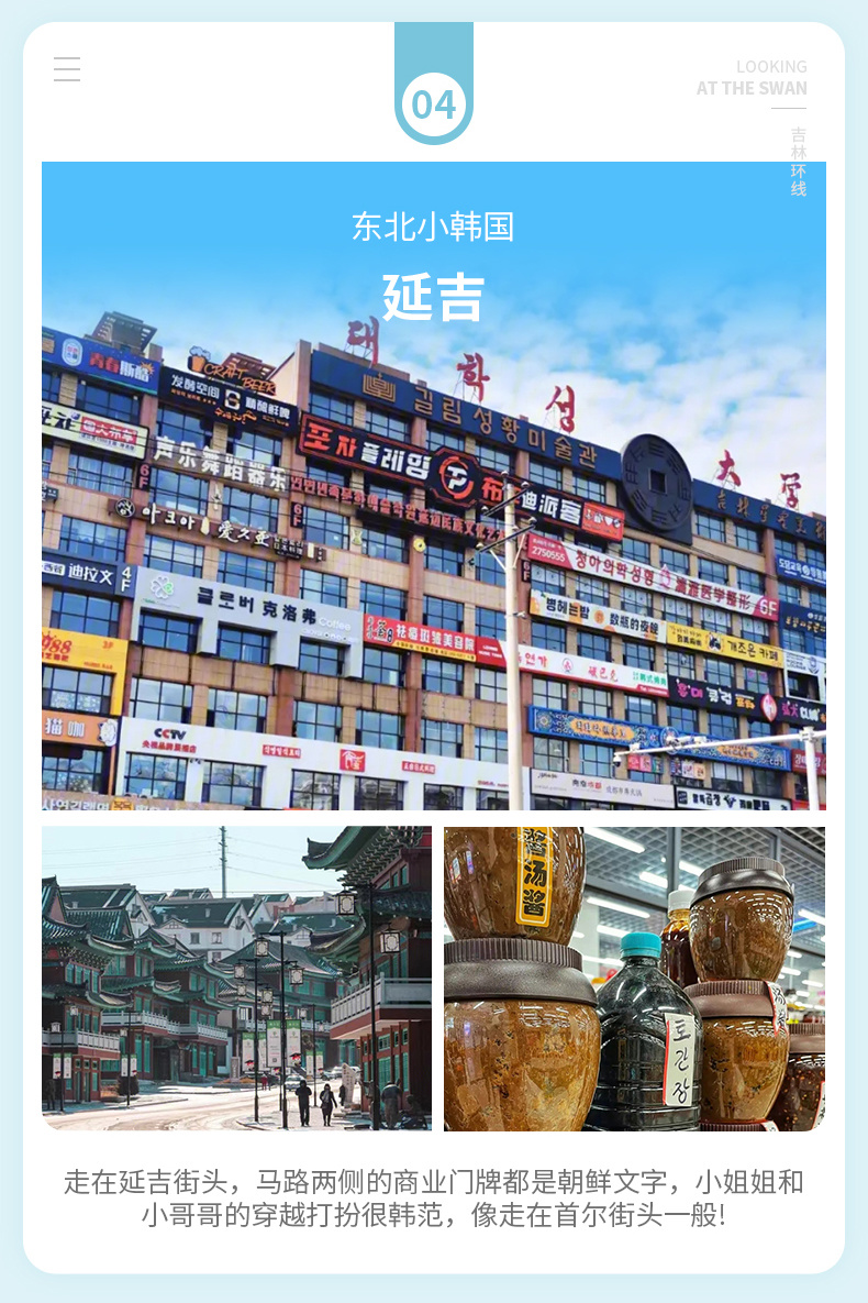 √ 车程13:00-15:00,出发前往【延吉】这是一个充满韩范的城市,朝鲜族比例占一半以上,汉族这里是少数民族。走在延吉街头,马路两侧的商业门牌都的朝鲜文字,人们的穿越打扮也像是首尔街头。