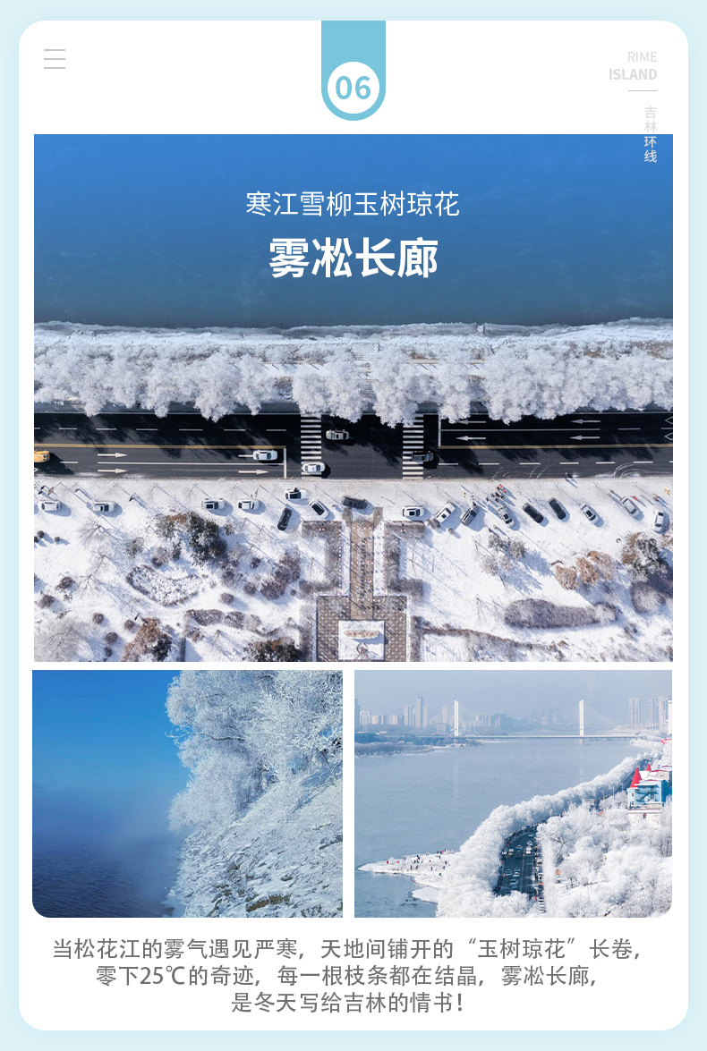 √ 车程07:00-07:30,吉林【雾凇长廊】与桂林山水、云南石林、长江三峡被称为中国四大自然奇观。而吉林雾淞却是这四处自然景观中最为特别的一个。清晨,由于自然的天气因素不断变化,如果幸运的话我们是可以观赏到「雾凇」奇观的哦。