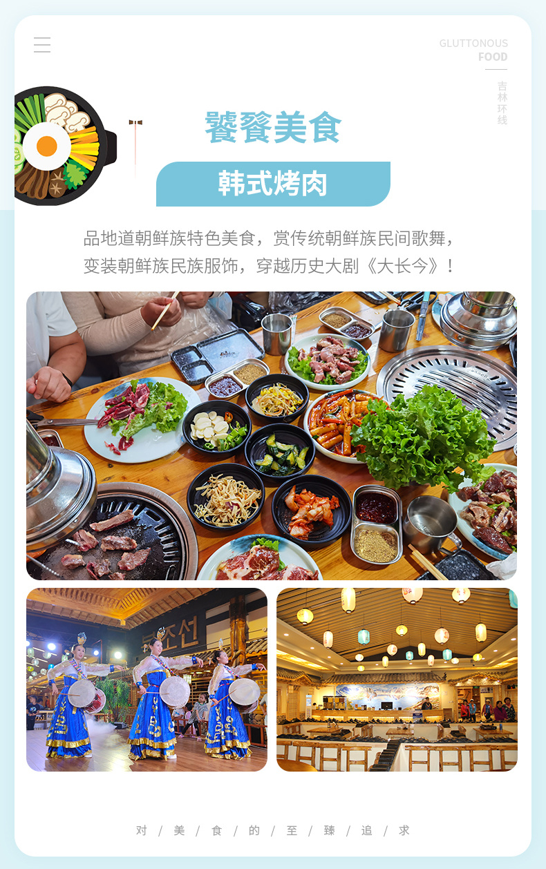 餐 饮:5早餐,1特色餐(朝鲜烤肉)