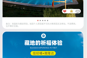 【行程概述】早餐后出发,离开磨西古镇,沿着【大渡河】逆流而上,来到著名的【泸定桥】(自愿参观,上桥保险5元/人自理),这是一座曾经决定了中国近、现代历史进程的古桥,参观后,您会感受到中国历史的沉重与辉煌。继续行车,沿途经过《康定情歌》的故乡-康定市,之后便抵达一处秘境海子——【红海子(加呷腊)】,这里可以包揽整个湖泊和雪山。晴天,可以看到笔架山(5880M)、田海子峰(6080M)等一众雪山,拍照更是一绝,海子和雪山遥相呼应,怎么拍都好看。沿途这条绝美的S434,人少景美,一路都是惊喜,蓝天、雪山、海子尽收眼底,其中各大旅行博主的拍照圣地——【康定机场彩虹公路】不要错过啦,这里背靠雅拉雪山,遥望贡嘎群山,分分钟拍出雪山公路大片,惊艳朋友圈。拍照打卡结束后,行车约1小时便可抵达这个近年来非常火爆的360°天然雪山观景台——【鱼子西(曲莫贡)】,天气好时,可以同时看见【雅拉雪山】、【贡嘎群山】、【四姑娘山】全貌,在这里随手一拍,皆是大片!山顶的秋千、露营的帐篷更是网红拍照打卡地。游玩结束后今晚前往新都桥镇入住,放好行李后,前往餐厅品尝当地特色餐-【牦牛肉汤锅】,美味又饱腹,最适合冬季时节来一顿啦!