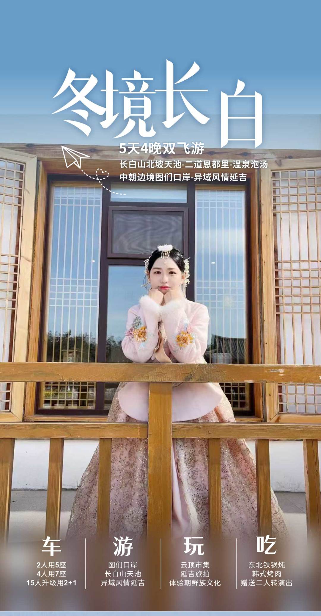 下午前往【中国朝鲜族民俗园】赠送:朝鲜公主服体验,高丽世子服体验(不含妆造),每人另赠送一张精美电子照片(赠送项目,不用不退)。民俗园里无处不在的朝鲜族风情,随手一拍都有韩剧女主角Style。