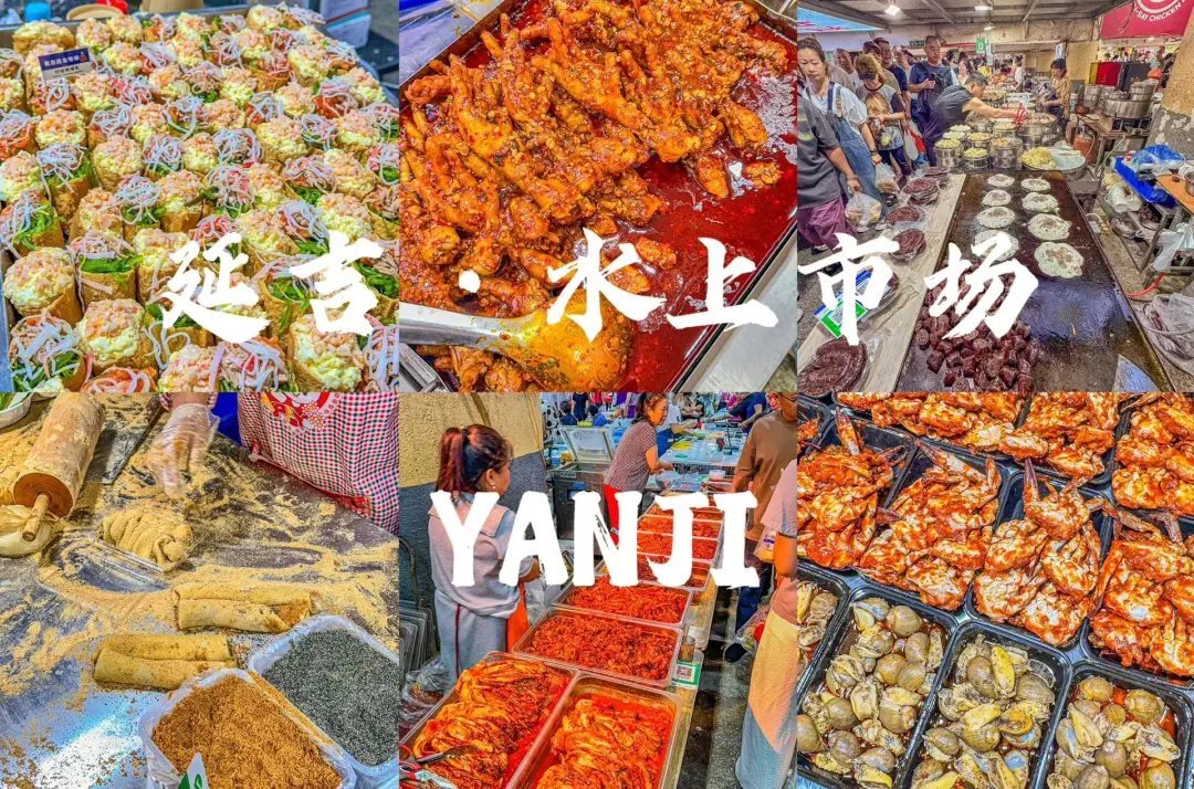 能起早的小伙伴可自行前往网红乌拉拉打卡地【延吉水上市场】来到延吉,水上市场一定是必打卡地之一,商贩的叫卖声、付款的提示声不绝于耳,非常热闹。尤其熟食区最受游客们喜爱,打糕、米肠、米酒、咸菜等传统朝鲜族民族特色食物最受欢迎。