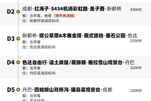 第2天:成都-红海子-S434机场彩虹路-鱼子西-新都桥(收取旅游费用总额60%的损失费)