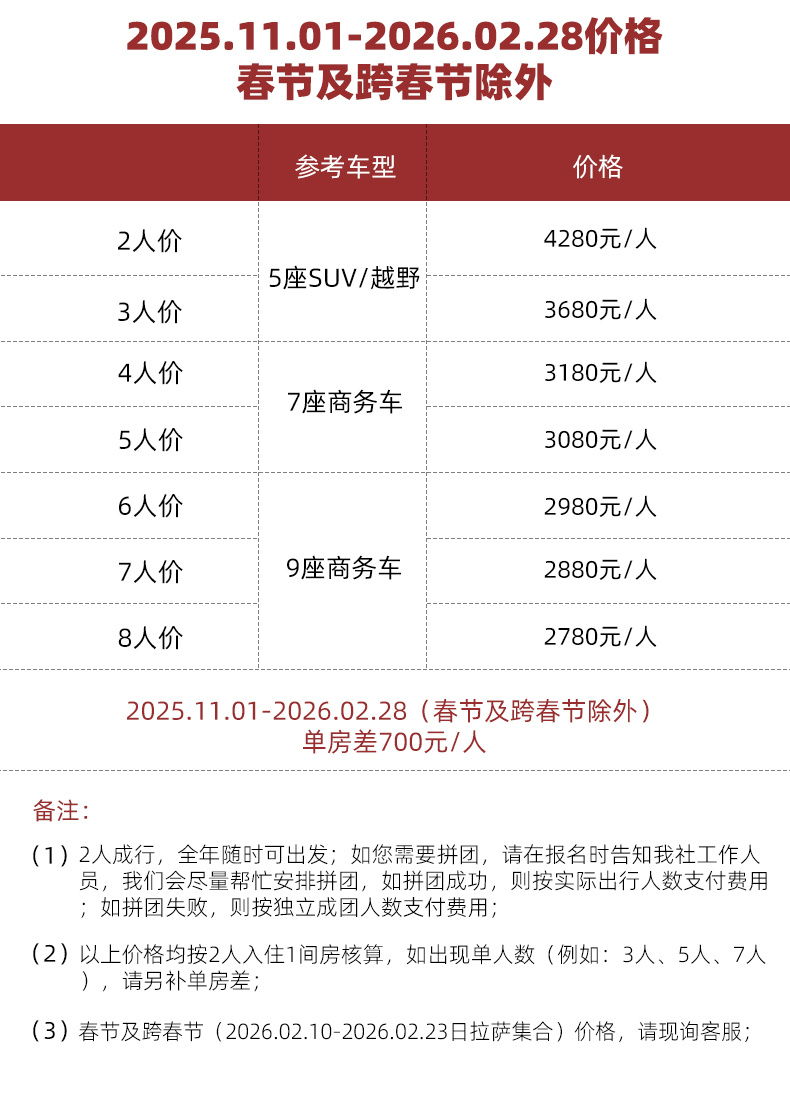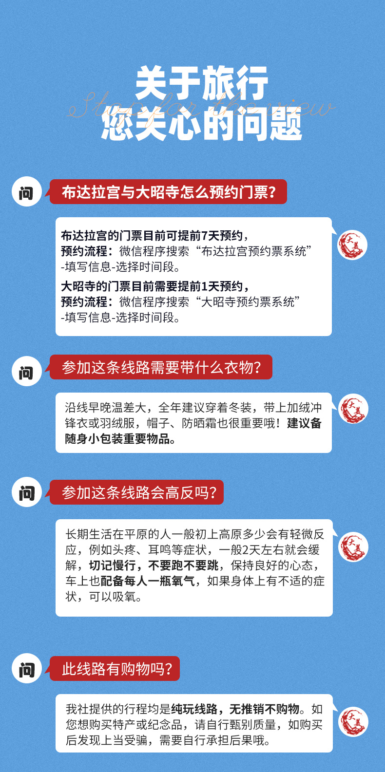 (2)拉萨散团日当天不含住宿,如需代定,请提前联系客服;