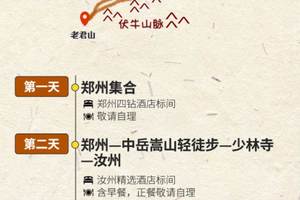 3、不含少林寺,老君山门票,徒步路线不经过景区门口,无法购买门票,如果遇到查票,现场 AA;