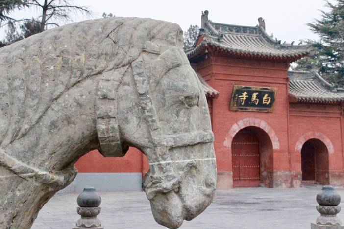 之后前往【白马寺】,山门后,左右两尊宋代石马漆面斑驳,充满了岁月的痕迹。穿过竹林往西走,泰国金塔反着朝阳晃眼,缅甸佛殿的白玉廊柱摸着沁凉。印度桑奇大塔前,咖喱色僧袍的师父扫落叶,扫帚沙沙声和着蝉鸣,“中原第一古刹”的意境让人恍然。