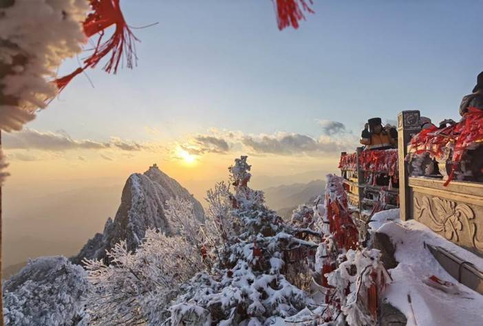 之后穿越南天门后,到达【金顶道观群】,金顶道教建筑群依托山顶建筑,均为明清皇家宫殿式建筑。金殿、亮宝台、玉皇顶三座金顶在阳光照耀下辉煌多彩,无愧于“南有武当金顶,北有老君铁顶”的美誉。入住后,我们将在在老君山金顶等一场日落,远处的霞光,金顶的夜景,如此美景,不愧是远赴人间惊鸿宴,一睹人间盛世颜啊。