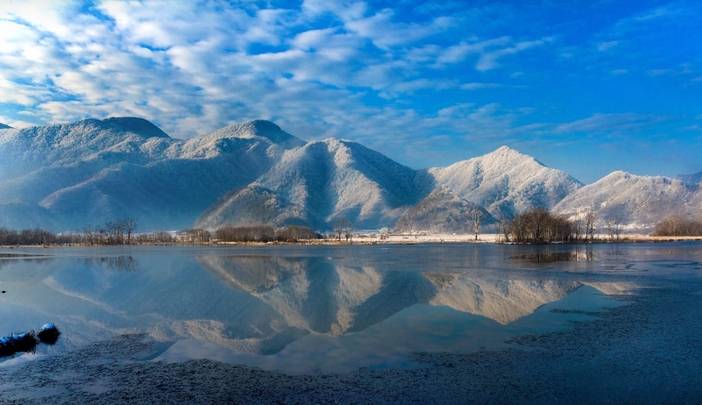 当凛冽的风洗净天空,群山披上厚厚的雪袄,大九湖便进入了它一年中最静谧、最诗意的季节。湖面不再泛起粼粼波光,而是凝结成一面巨大的镜子,倒映着雾凇、远山和偶尔飞过的寒鸦。