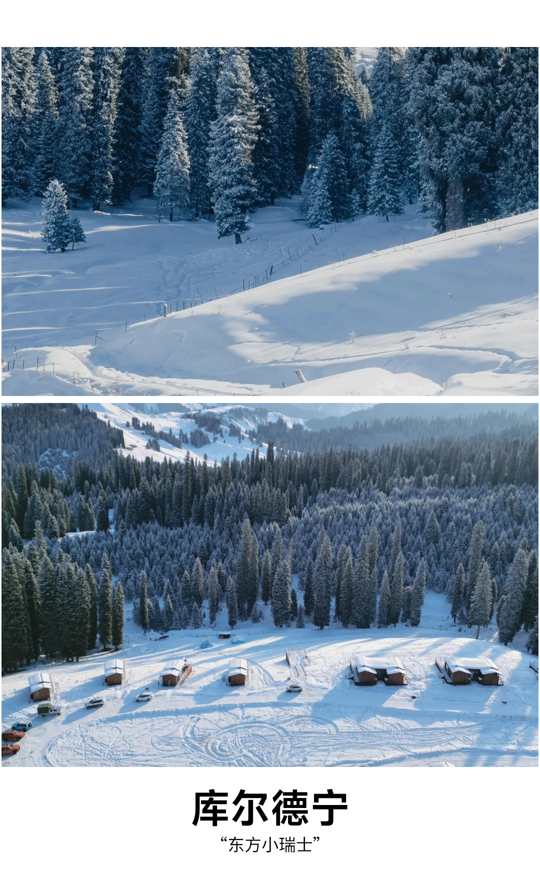 早晨在美景中苏醒,开始正式游览库尔德宁。冬季的库尔德宁,皑皑白雪将这里妆点成一个超凡脱俗的琉璃世界,每一寸景致都透着空灵与静谧,宛如遗落人间的仙境。举目四望,连绵起伏的山峦像是被大自然披上了一层洁白无瑕的绒毯,天山雪岭云杉也换上了银装。脚下,厚软的积雪发出“咯吱咯吱”的轻响,像是在轻声诉说着冬日的秘密。每一步踩下去,都能感受到雪的细腻与温柔。四周的草地早已被雪深深掩埋,平日里星星点点的野花踪迹全无,唯有白茫茫一片,纯净得让人不忍心去破坏这份美好。不远处,蜿蜒的溪流也被冰雪封印,冰面光滑如镜,倒映着岸边银装素裹的世界,像是一面通往童话国度的魔镜。偶尔有几处未完全冰封的地方,溪水在冰层下潺潺流动,发出微弱却又执着的声响,给这寂静的雪境添了几分灵动。抬眼看向远方,云雾与白雪交织在一起,模糊了山峦与天空的边界,一切都变得如梦似幻。“