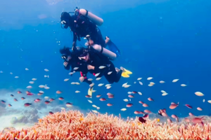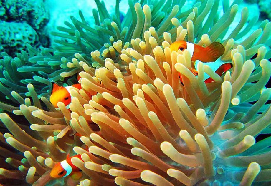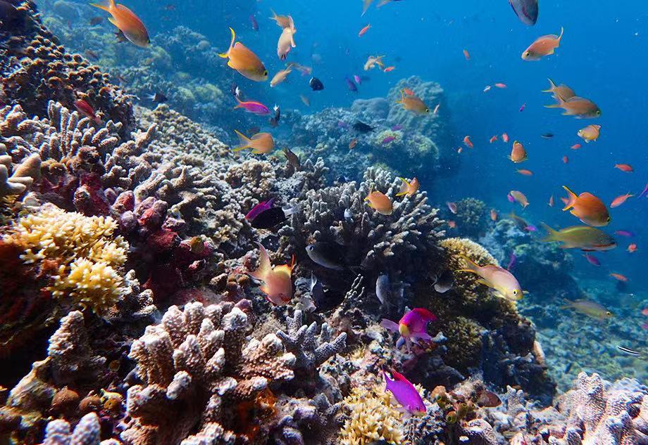 清澈见底的海水、种类纷繁的鱼类和形态各异的珊瑚、