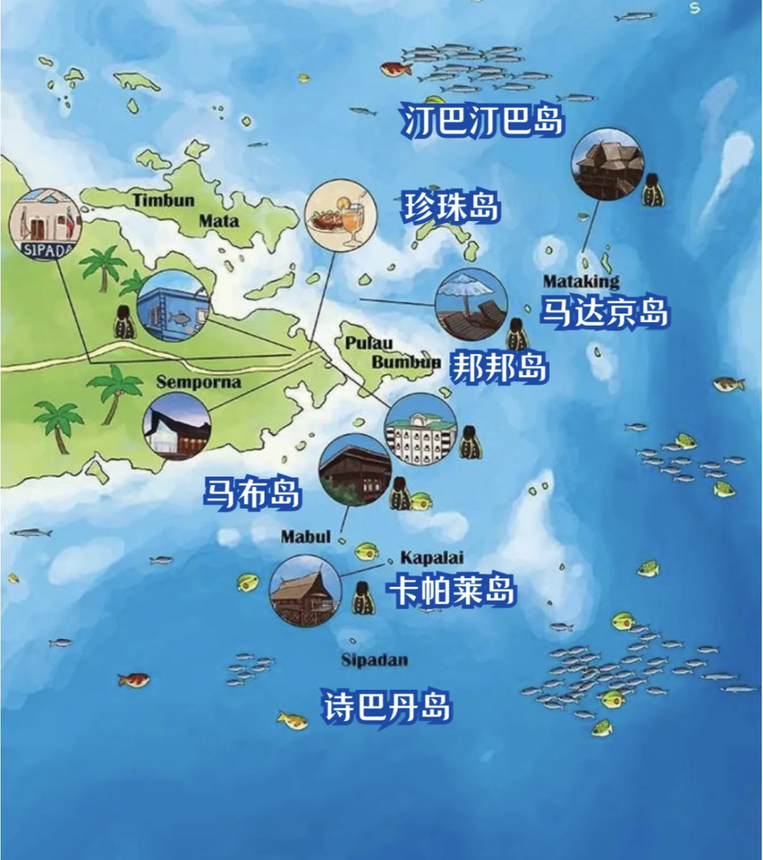 敦沙卡兰海洋公园,也称仙本那群岛公园,位于沙巴东侧的近海海域,是由8个小岛组成的海洋公园。
