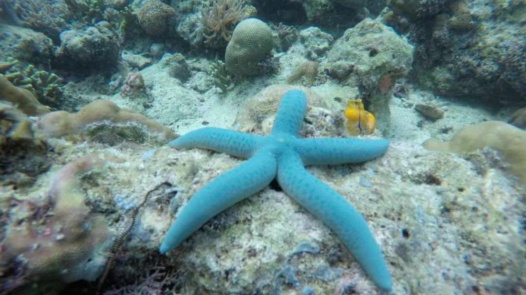 马步岛周围有许多的潜点,海水通透而平静,数不清的珊瑚礁游弋着不同的生物,遍地的海星…..