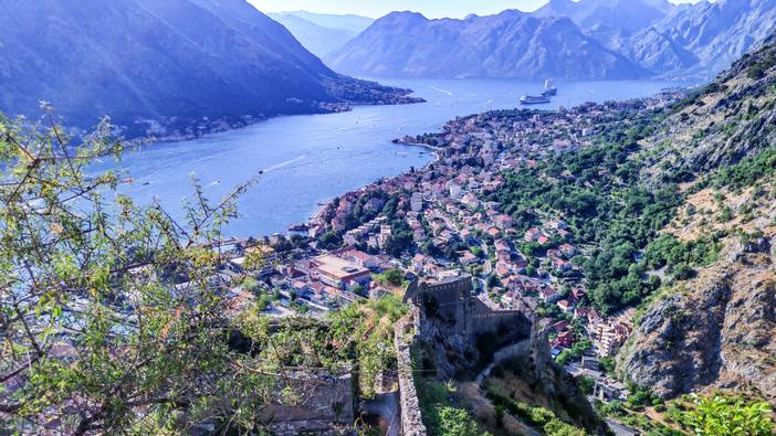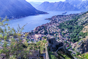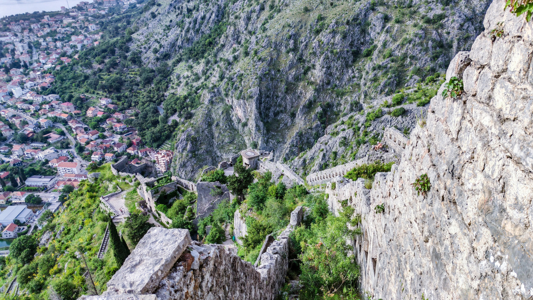 科托尔湾的中世纪城墙绵延入海
