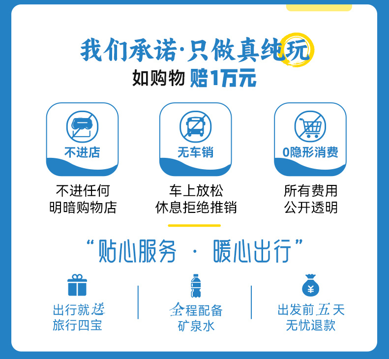 10、出游过程中,如产生退费情况,以退费项目旅行社折扣价为依据,均不以挂牌价为准。