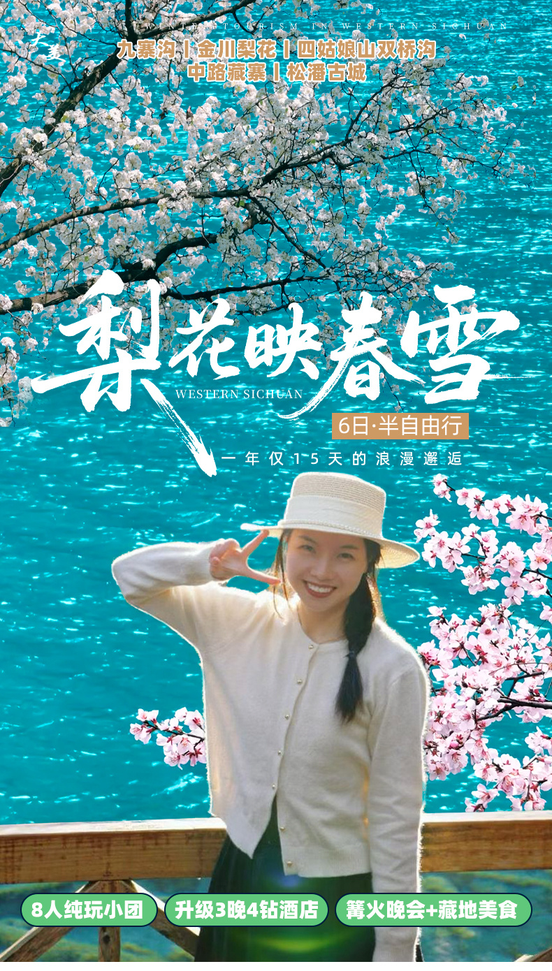 九寨沟+金川梨花+四姑娘山双桥沟+中路藏寨+松潘古城6日·半自由行