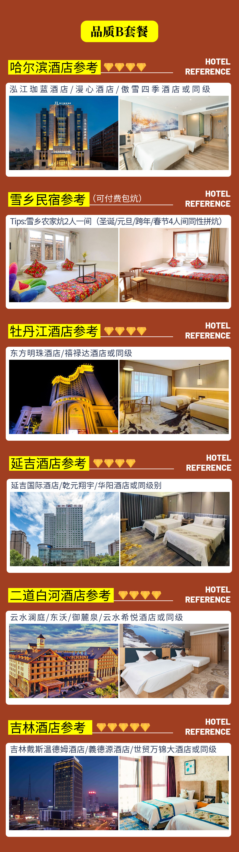 套餐住宿酒店标准不同,其他接待标准一致