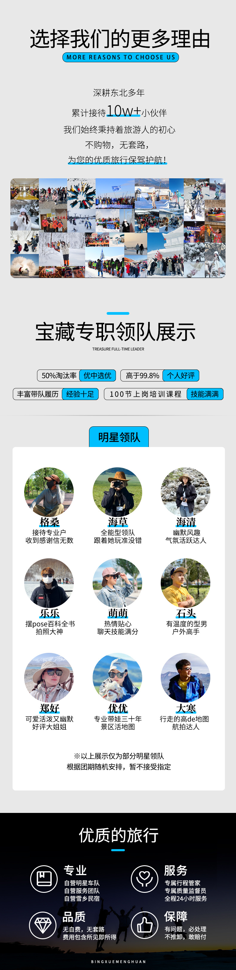 1.2米以下为儿童,含车位费、雪乡炕位、滑雪、赠送项目、保险、免门票、免早餐,不含酒店住宿、不含雪地漂流,不含温泉正常1.2米以下免票如遇收费自理;超高但未满12周岁需补门票440元+温泉100元/次+早餐费190元;如需占床需补床位费5晚酒店1200元/人含早餐含温泉,1晚农家炕700元/人含早餐 |