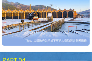 4、远东机车库为不收费景点,每周一闭关,如遇闭关或不可抗力关闭则取消游览无退费