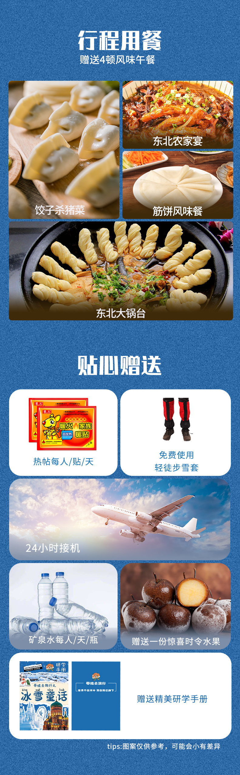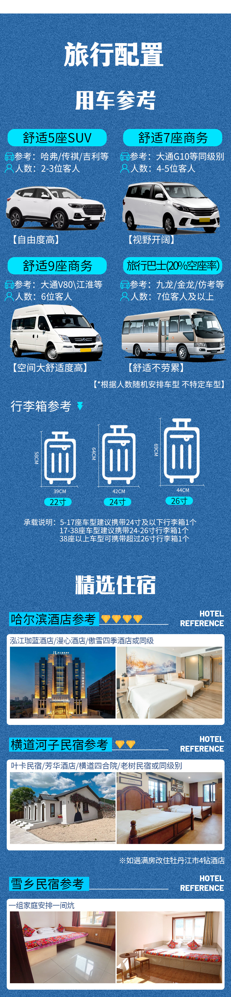 1、D4和D5哈尔滨住宿不保证和D1住宿为同一家,D4和D5为一家酒店连住。