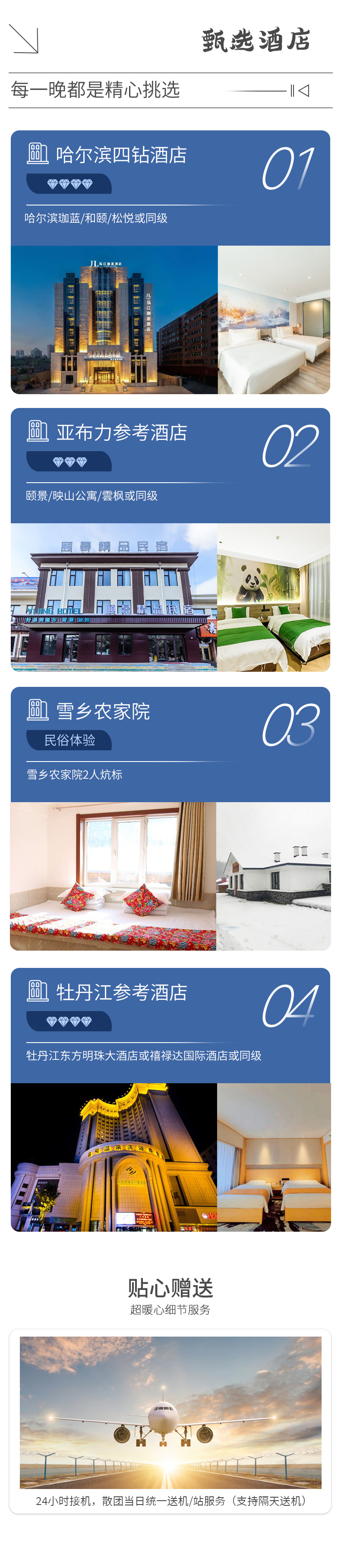 备注:钻级标准参考携程钻级标准,东北经济发展较差,酒店已经是我们精心挑选的,但是和大城市同级别酒店相比各方面略差一些,敬请您谅解;