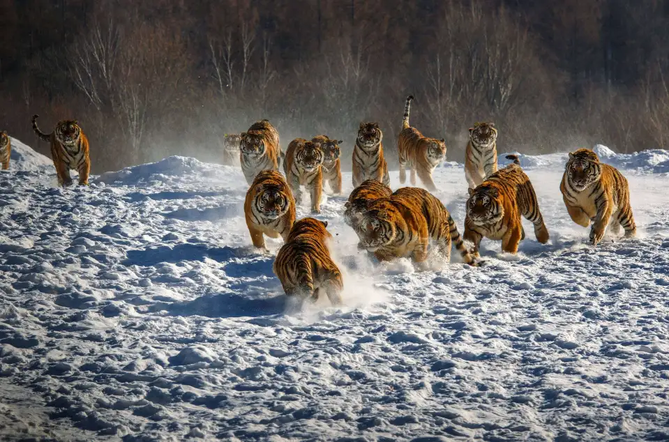 10:30参观世界最大的东北虎繁育基地【东北虎林园】,乘车观赏猛虎区,你可坐在车内寻觅老虎踪迹,领略东北虎的雄姿。在步行栈道,还可以观察研究东北虎的生活习性,并可自费亲自给老虎喂块肉、投活鸡等。
