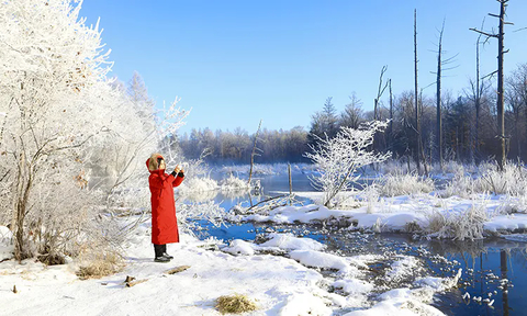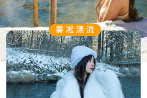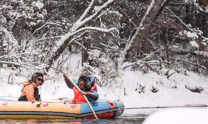 07:30 抵达【雾凇漂流】,当气温达到零下二三十度时,万物都被白雪冰凌覆盖,而航线上只有一条温泉河流静静流淌。漂流在雪林之中,看着两岸雾凇树挂(视天气情况),一派“船在水上漂,人在林中游”的意境。漂流的河段也时急时缓,缓时如柔情似水的少女,让你静赏宁静的美。急时则浪花四溅,让你的惊呼声穿梭在山林之间。