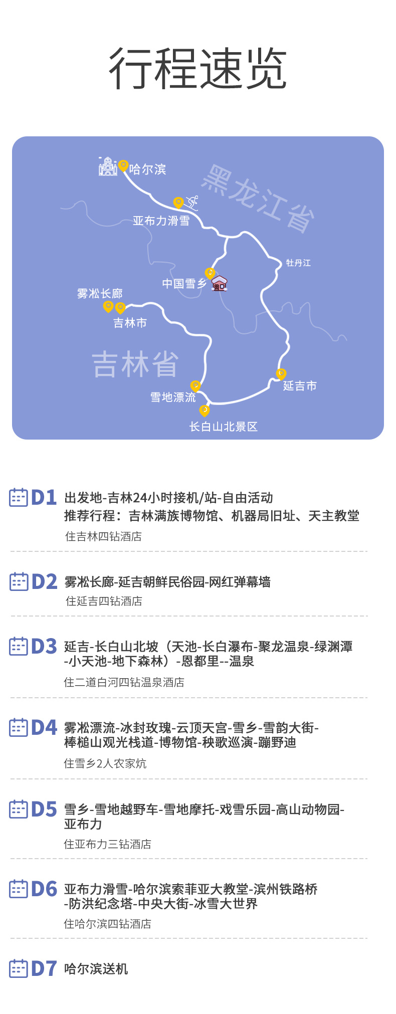 4、赠送雪乡雪地蹦野迪(如遇景区原因或大风等天气原因不举办不退费用)。
