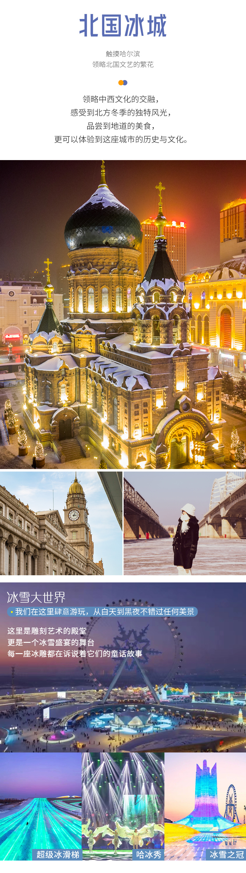 亚布力滑雪-哈尔滨(239KM,车程约3.5小时)-索菲亚大教堂-滨州铁路桥-防洪纪念塔-中央大街-冰雪大世界